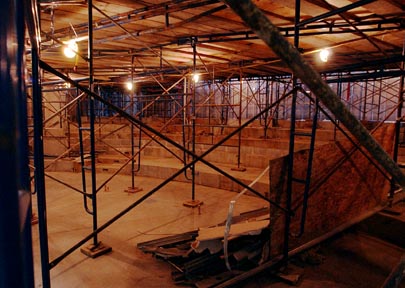 One of the many lecture halls in the new Stata center awaits the installation of rows of seats.