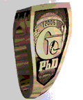 The graduate student class ring features new details, some reminiscent of the undergraduate ring and others more personalized for graduate students. It follows the standard three-part ring construction of the undergraduate brass rat, with a primary image on the front panel, called the bezel, and an image on each panel, or shank.