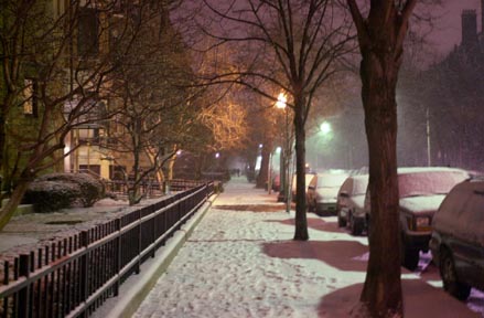 Beacon Street lies covered in snow less than an hour after the storm arrived Friday night.