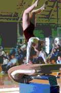 The first rotation of the afternoon had MIT on vault and SCSU on bars. Although the Engineers had some troubles sticking landings in their first event, SCSU appeared to have the same difficulty in the second rotation, when the two teams switched events. At the half, the score was a tight 90.525 to 90.050, with SCSU ahead. Rotations three and four had MIT first on beam and then floor, where they were able execute their routines and come out on top.