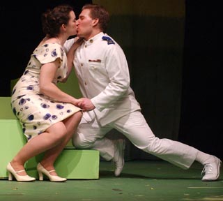 Beatrice (Holly B. Laird ’07) and love-denial Benedick (Mike A. Simon) finally express their love in secrecy.