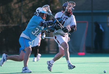 Brendan T. Maddigan ’04 chases down the ball after a faceoff during the first men’s lacrosse game of the season Saturday afternoon. Tufts beat MIT 16-4.