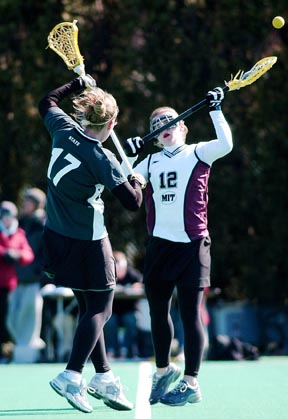 Deanna M. Lentz ’06 wins a faceoff against Plymouth State during the women’s lacrosse match Saturday. MIT lost the game 18-3.