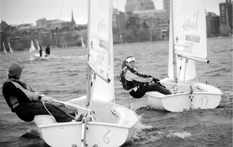 Daniel A. Bercovici ’04 looks back at an opponent in the Marchiando Trophy Team Race last Saturday. MIT won one race and lost 13, placing last in the competition.