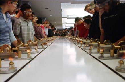 Students and spectators look on at the 2.670 spinoff in Papalardo Lab last Friday afternoon. Honors are given to the fastest, slowest and most aesthetically pleasing sterling engines.