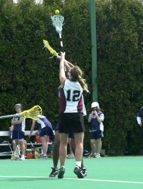 Deanna Lentz ’06 wins the face-off against Mount Holyoke College in Saturday’s women's lacrosse game. MIT dominated in the last home game of the season, winning 21-10.