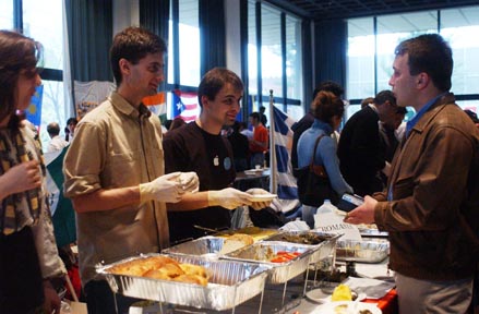 Alexandr Andoni ’04 and Tudor Leu ’04 of the Romanian Student Association sell food, one of the main attractions of the I-Fair.