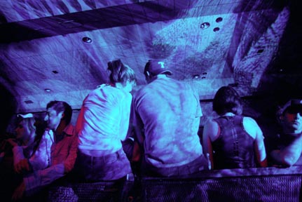 Two MIT students sit on a barricade before the Live concert.