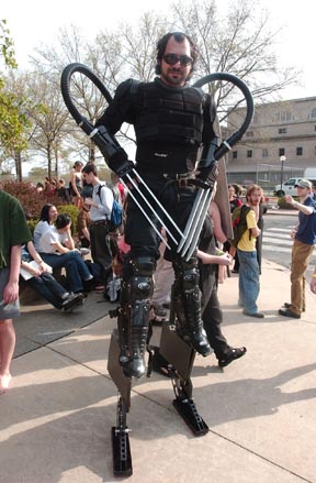 Hani Sallum ’96 towers over steer roast attendees last weekend in a costume he designed employing mechanical stilts.