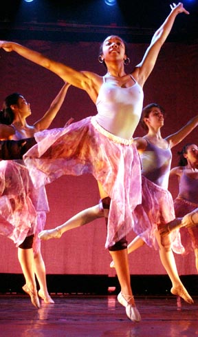 Shaundra L. Bryant G prances in “Celebration,” a dance choreographed by Michelle S. Machon ’04 for the Dance Troupe spring show.