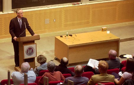 Outgoing President Charles M. Vest speaks to the faculty about issues facing the Institute during their meeting held this past Wednesday, Sept. 15 in 10-250.