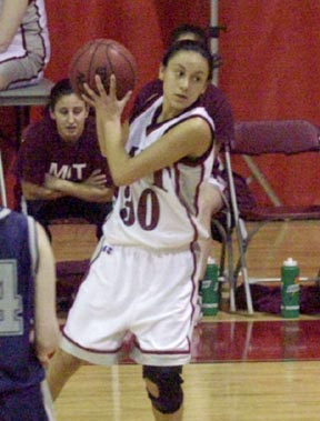 Andrea J. Dooley ’06 drives past a defender to sink a two-point shot during MIT’s 56-47 loss to Wheaton College Tuesday evening.