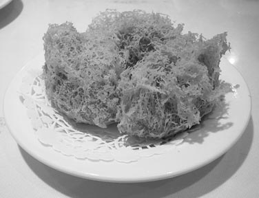 Har gao (above) contains shrimp and shredded bamboo.