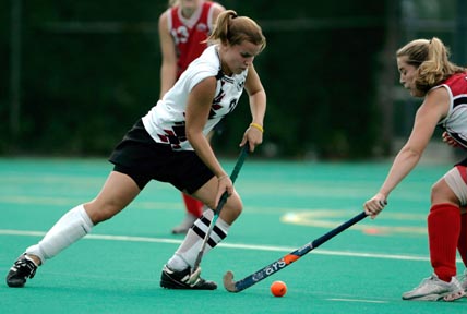 Deanna M. Lentz ’06, left, fights for control of the ball during MIT 5-4 overtime loss to Clark University on Saturday.