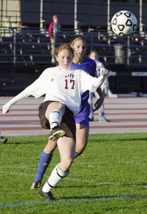 Amy S. Ludlum ’08 fires a shot on Coast Guard Academy’s goal last Tuesday afternoon in Steinbrenner Stadium. MIT defeated the Coast Guard 3-1.