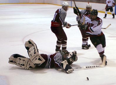 Matt Lackner G attempts to avoid the diving Springfield College goalie and get the puck through in a game last Friday. MIT triumphed over Springfield 7 to 3.