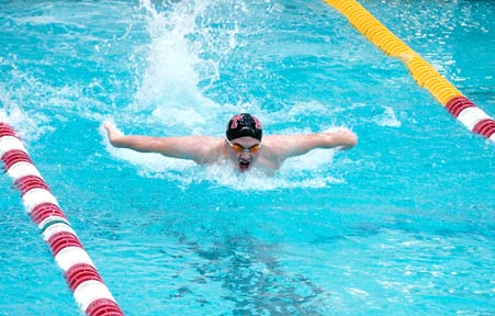 Jeffrey J. Pan ’07 swims to a first place finish in the 50-yard butterfly during the tri-college swim meet last Saturday, Nov. 20 at Zesiger Center. The Engineers defeated Babson College and Bowdoin College.