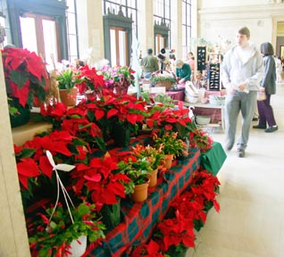 Passersby check out a stand of festive poinsettias in Lobby 10 last Thursday afternoon during the Holiday Craft Sale.