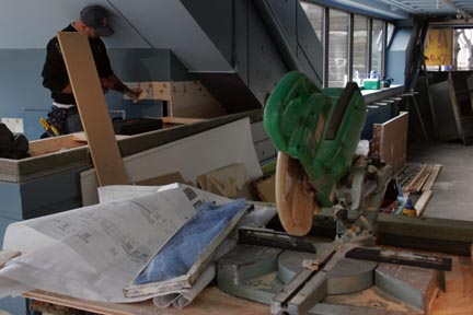 Paul Mank works on redecorating the old Arrow Street Crepes to be Anna’s Taqueria in the Student Center. Anna’s is scheduled to open on Feb. 1. (See story on page 9.)