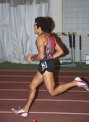 Fivos G. Constantinou ’06 runs MIT’s anchor leg during the 4x800m relay last Saturday, Jan. 29. The MIT men’s track team attended and won a meet hosted by Bowdoin College.