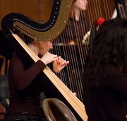 Ina Zdorovetchi, a harpist from the New England Conservatory, plays during MITSO's final piece of the night, the 1919 version of Igor Stravinsky's "The Firebird Suite."