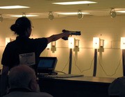 YunJa Chen '07 lines up her shot at the National Rifle Association's Intercollegiate National Championship in West Point, N.Y. MIT defeated the U.S. Military Academy to take the National Championship.