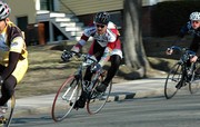 Nick C. Loomis G flies through the corners on his way to a first place win in the Men's D race of the Boston Beanpot Cycling Classic's Criterium this past Sunday.
