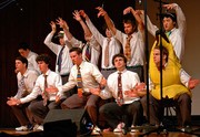 Members of MIT's Resonance do a cheer before opening the semi-finals of the International Championships of A Cappella held at Kresge Auditorium on Saturday, March 24.