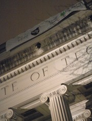 Hackers dropped a banner in Killian Court early Friday morning reading "This is a bomb. This is not a bomb. Is your ego satisfied? Brought to you by the MIT Bomb Squad.," with drawings of a bomb and a Mooninite respectively. A Lite-Brite-like depiction of the latter, an "Aqua Teen Hunger Force" cartoon character, touched off a bomb scare that paralyzed Boston on Jan. 31, 2007.