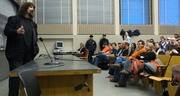 Hundreds of prefrosh listen to Dean of Admissions Marilee Jones speak at yesterday's CPW welcome in Rockwell Cage.