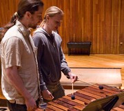 Rachel C. Grey ’98 (right) and Alan F. deLespinasse ’94 tinker with a xylophone after this past Sunday’s performance by the Time Table Percussion ensemble. After the concert, which featured pieces by students Cynthia (Tilly) N. Whitney ’07, Thomas J. Carr ’09, and Nina C. Young ’07, audience members were invited onto the Kresge stage to learn about the instruments used during the performance.