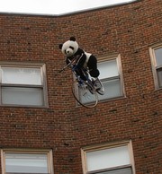 PANDAS CAN’T FLY—This unfortunate stuffed panda was selected for the test drop in Baker House’s Annual piano drop.