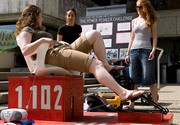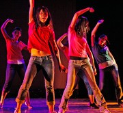 Daphne D. Hao '07 (front, left) and Qian Qian S. Tang '10 (front, right) dance in a piece called "Strategery." MIT Dance Troupe holds its spring show through Sunday, May 13 in Kresge Little Theater.