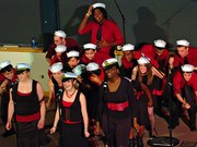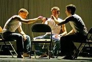 (left to right) Sebastian Castro '09, Alejandro P. Ojeda '10, and Silverio Garcia '07 toss off a drink before joining their women in a quick salsa number called "Hasta Que Se Rompa el Cuero." MIT Dance Troupe holds its spring show through Sunday, May 13 in Kresge Little Theater.