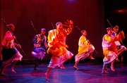 (left to right) Kapil A. Dilwali '10, Tarikh C. Campbell '09, Emanuel P. Borja '09, Kamo Jurn '10, and Neal D. Miller '10 jump and dance in "DT Bhangra." MIT Dance Troupe holds its spring show through Sunday, May 13 in Kresge Little Theater.