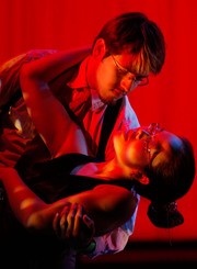 Fernando Funakoshi '09 and Mary Hong '10 dance together in "The Name's Bond, James Bond." MIT Dance Troupe holds its spring show through Sunday, May 13 in Kresge Little Theater.