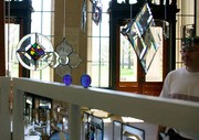 Peter Guilday of Guilday Glass looks over his display of suncatchers in Lobby 10 last Friday, May 4.