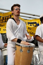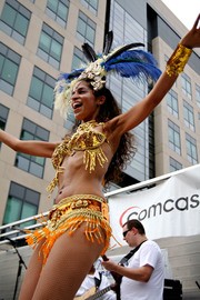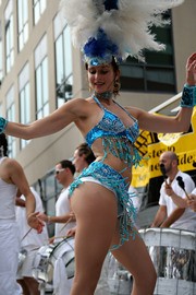Performers from Samba Tremeterra of the Brazilian Cultural Center during Cambridge’s annual Caribbean Carnival International. The parade started 15 years ago as a street fair and has grown to a 1.5 mile route taking it through Cambridgeport, Central Square, and Kendall Square. More information can be found on the Carnival’s Web site, http://www.cambridgecarnival.org/.