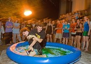 Identical twins Patrick J. Smadbeck ’09 (behind) and James B. Smadbeck ’09 wrestle in a pool of Jell-O behind Burton-Conner on Sunday evening as part of the West Side Bash for Residence Exploration.