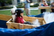Sarah C. Hopp ’08 grins as the cart of a log flume ride built for EC Rush impacts the water. The ride, named “2 Chicks at the Same Time,” featured a net 17-foot vertical drop.