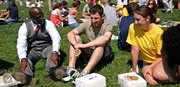 Eddie Moore, Jr., Kieran A. Mclaughlan ’11, and Leah R. Dancy ’08 (left to right) eat lunch on Kresge Oval after Moore spoke at Wednesday’s Orientation diversity event. Moore is the director of diversity at the Bush School in Seattle.