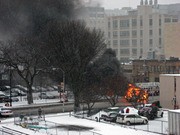 A shuttle bus operated by the Massachusetts Bay Transportation Authority caught on fire on Massassuchetts Avenue just south of Albany St. around 9:40 a.m. Wednesday morning. There were no injuries, according to the Cambridge Police Department. THE RIDE is a service operated by the MBTA to provide service to those who are not able to use subways, busses or trains.