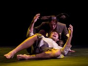 The shepherd’s son or March Hare (Molly Goyer Gorman, back) is being tricked by Prince Florizel’s thieving servant Autolycus (Owen Holland, front). The Cambridge American Stage Tour visited MIT this week to perform Shakespeare’s “The Winter’s Tale.” For more information, visit http://castonline.org/.