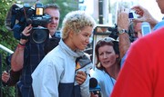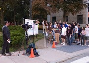 Local media representatives barrage Star A. Simpson ’10 with questions after she was arraigned on charges of disorderly conduct and possession of a hoax device. Simpson was released on $750 bail on Sept. 21, 2007.