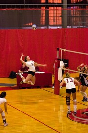 Kelsey K. Cappelle ’11 sets up a textbook spike against UMass-Dartmouth on Tuesday night. The Engineers won the match (30-20, 30-25, 30-19).
