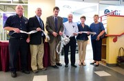 Brian W. Ducharme, CEO of MIT Federal Credit Union, cuts a ribbon held by the bank’s board of directors at the grand opening of the bank’s new Student Center branch. The branch officially opened for business of Aug. 6, 2007.