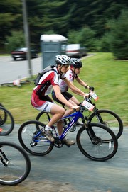 Lisa F. Marshall G takes the hole shot at the start of the Women’s B category race. University of Massachusetts-Amherst held the series of races on their campus last Saturday, Sept. 22.
