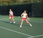 Sophomore Katherine M. Smyth ’10 concentrates during the women’s tennis game against Tufts University Thursday, Sept. 27.