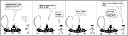 Gavin M. Cotter ’09, Stephen P. Fournier ’09, and Alan D. Foreman ’09 (left to right) enter their boat, The Black Pearl, at the start of the final race at the Head of the Zesiger Cardboard Boat Regatta on Friday, Oct. 19. Shortly after entering the Pearl, as the race was starting, the boat started taking on water and sunk.