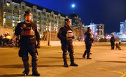 Boston and Metropolitan Law Enforcement Council Police keep crowds at bay in Kenmore Square after the Red Sox overcame the Cleveland Indians in the American League Championship Series on Sunday night. The World Series will start on Wednesday night as the Sox face the Colorado Rockies at Fenway Park.